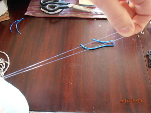 En primer lugar, he destripado el paracord y desenrolla aproximadamente 20 pies de linea de pesca. Derritió los extremos en el paracord destripada para no fray (no cierro lo juntos). Empezar por poner el pedazo de extremo en el paracord y una vez que sale en el otro lado, tome el extremo y lo puso a través otra vez. Seguir haciendo eso hasta que esté todo en. Después de todo se inserta, derretir los extremos en el paracord y ensuciarse ellos juntos (Asegúrese de no derretir el sedal).