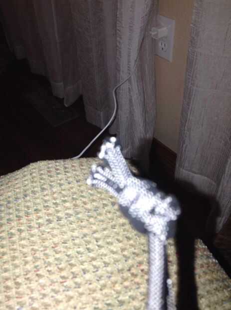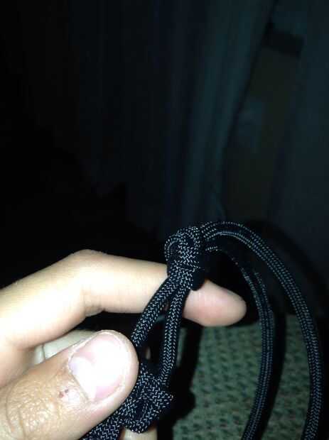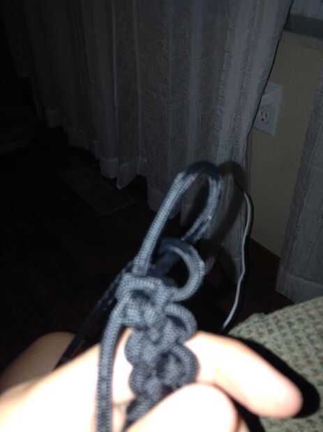 que quería hacer una pulsera de rápido a diferencia de los otros post de gente con los clips, como no pude encontrar ninguna. Mi nueva versión modificada sólo utiliza una longitud de cable para o utilidad. Compré un rollo de cuerda de utilidad por $5