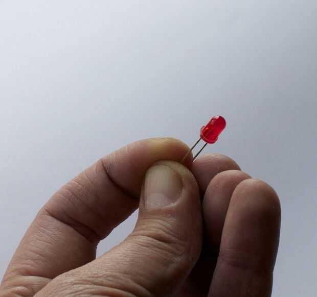 Tenga en cuenta que los LEDs tienen un plus- y un signo menos-(llamado ánodo cátodo de o).