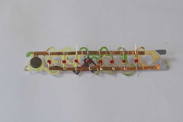 Por consiguiente, hay un rastro de más y menos huella en el braceLED: el rastro que va debajo de la batería es el rastro más.