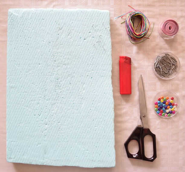 Junta de espuma de poliestireno para utilizar como su Junta de trabajo, cadena de cera de 1 m de 7 colores, cinta métrica, pernos para fijar cuerdas mientras se trabaja, más ligera, granos (opcionales) y tijeras.