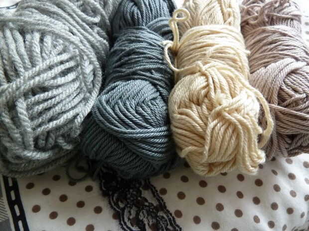 -llavero - cuatro colores del hilado: tres del mismo espesor, de una gruesa cola de - tijeras -