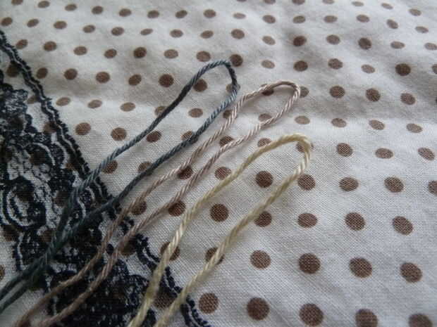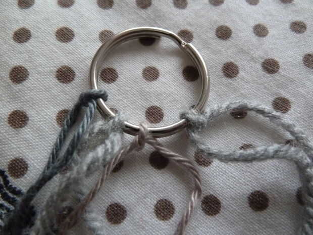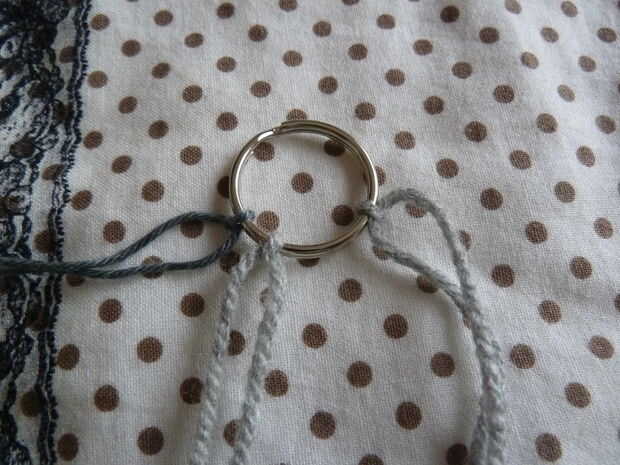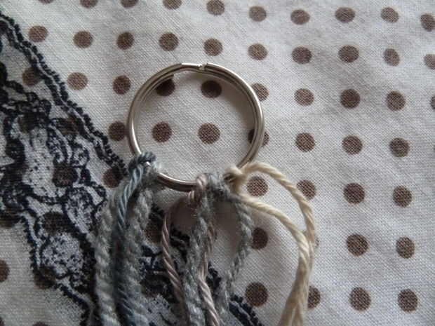 Ahora, para los otros tres colores de hilo. Cortar una hebra de sobre dos o tres metros (no medir exactamente, pero esto debería ser suficiente)