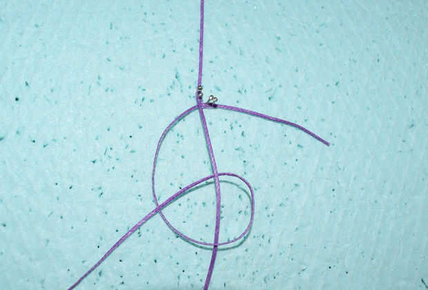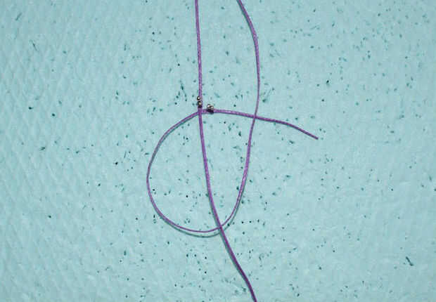 Primero uno es donde el cable de trabajo es ir sobre el cable de retención, entonces bajo el cordón de sujeción y tire a través del lazo en la parte izquierda sobre sí mismo. Ate todo el camino hasta el punto de partida y repetirla 3 veces.