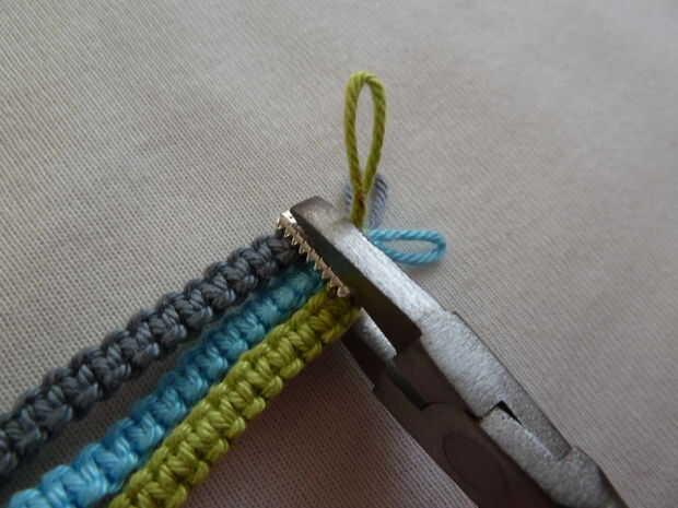 Con un par de alicates de punta plana, cerca de la encrespadura de cable. Asegúrese de que las tres partes son rectas y la forma que quieras cuando lo cierre, ya que no será fácil, posible abrirlo otra vez.