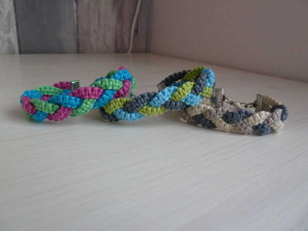 me gusta experimentar con técnicas ya conocidas. Yo quería hacer una pulsera que parecían dos pulseras de macrame se convirtió en una pulsera. El azul fue el primer intento. Yo estaba contento con cómo resultó la pulsera en sí mismo, pero no me gusto