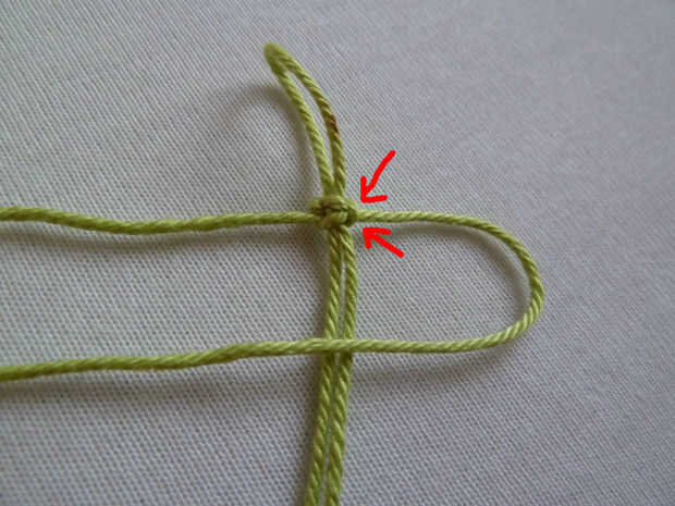 2. a partir de lo encontrado en el paso uno, poner el hilo de ese lado sobre el hilo medio