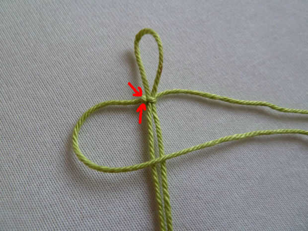 En el lado izquierdo de su nudo apenas hecho, usted verá una parte vertical del nudo. También he marcado en las imágenes.