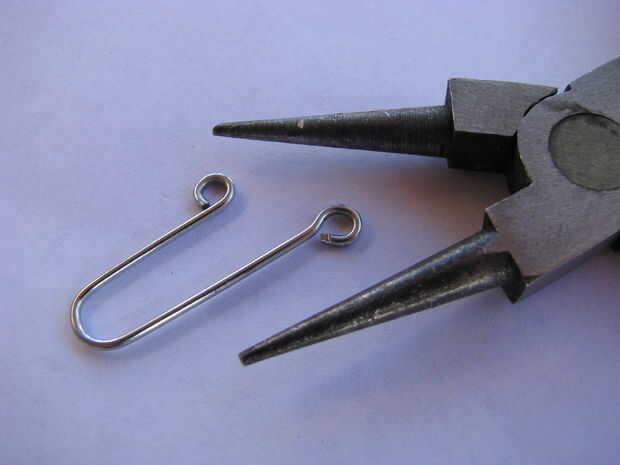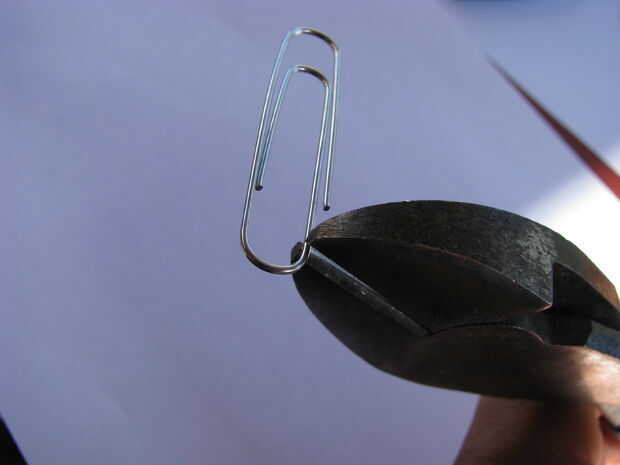Para el cierre, cortar una sección del clip de papel hacia fuera como se muestra en la imagen. Formar lazos en ambos extremos. Apriete el corchete de cierre.