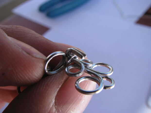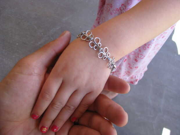 Hacer un anillo con la parte restante del alambre. Agregado el broche y anillo en cada extremo de la pulsera.