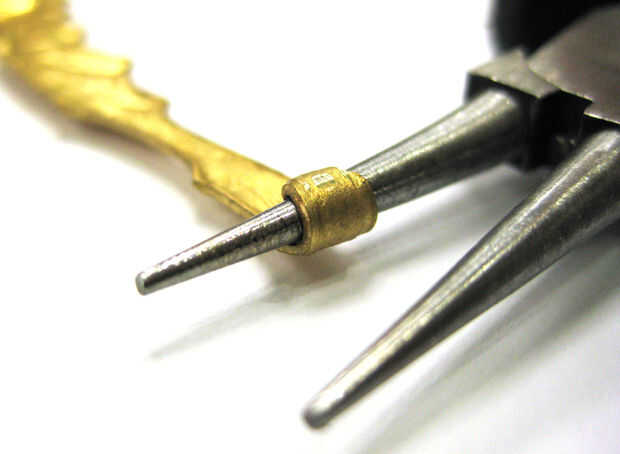 Con su pinza ronda doble la punta del ala de un murciélago para formar un lazo como se muestra. Repita con la otra extremidad de ala.