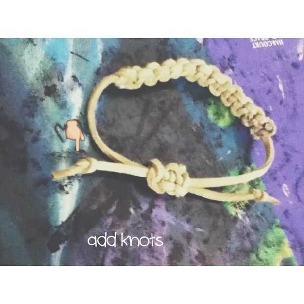 Conseguir otro pedazo de cable de unos 12 hace inane unos nudos más de Plaza (hago sobre 3-4) Añadir nudos por lo que el cierre no viene de hacer que a agregar pegamento o esmalte a todos nudos para hacer les más seguro ahora que termines!