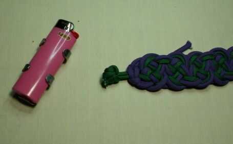 21) corte el nudo y los extremos con el encendedor del derretimiento.