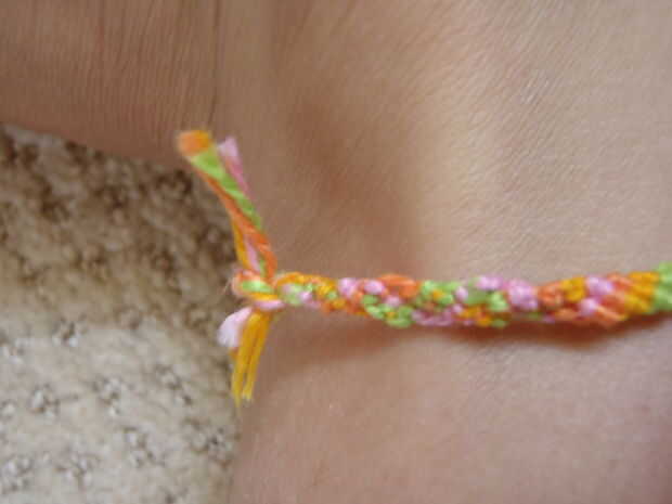 Haz un amigo para ayudarle a atar los dos extremos en la muñeca o el tobillo, y esto es lo que parece el producto final!