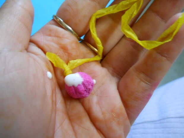 Envuelva la tira retorcida color 2 (pegamento + agua si es necesario)