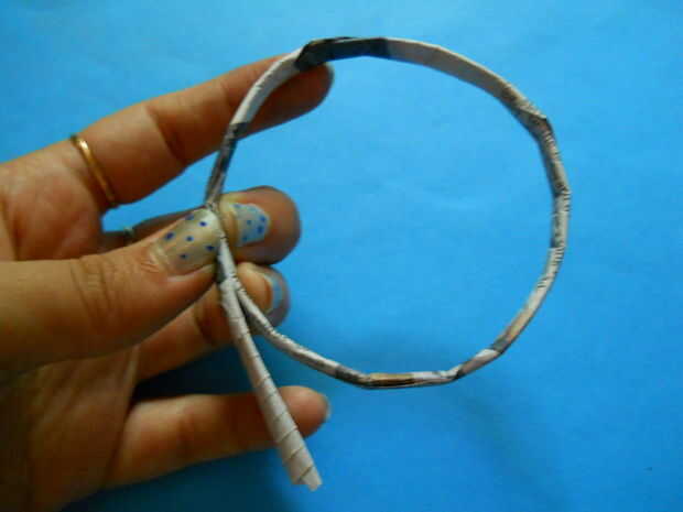 Ahora toma el brazalete, envuelva un rollo aplanado alrededor de él