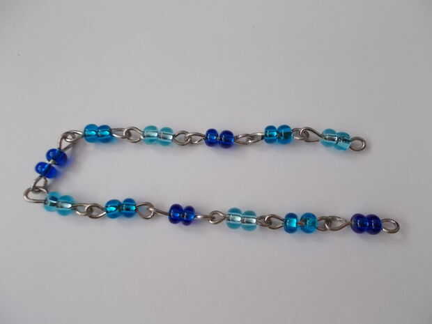 Ahora, probar tu pulsera preliminar y determinar aproximadamente cuántos enlaces más (si existe) tendrá que completar. Luego volver y hacer los enlaces antes de añadirlos al acabar la pulsera.