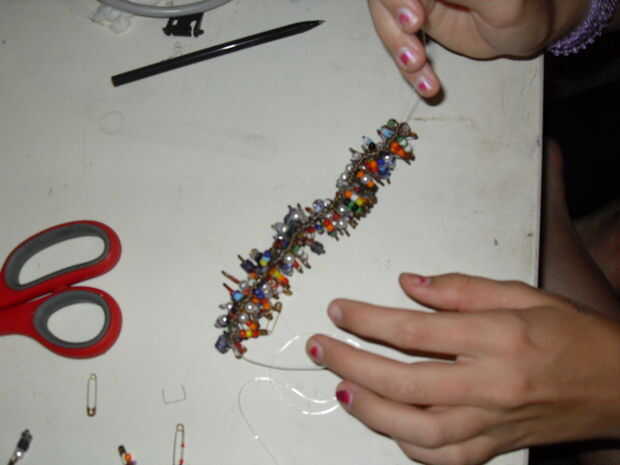 Cosas que "ll necesidad.1 imperdibles de varios tamaños2 granos3 cuerda elástica de4 cadena dePaso 1: Cómo hacer un collar de perno de seguridad.Usted usará una variedad de tamaños de perno de seguridad para hacer un diseño agradable. Sus pines y cad