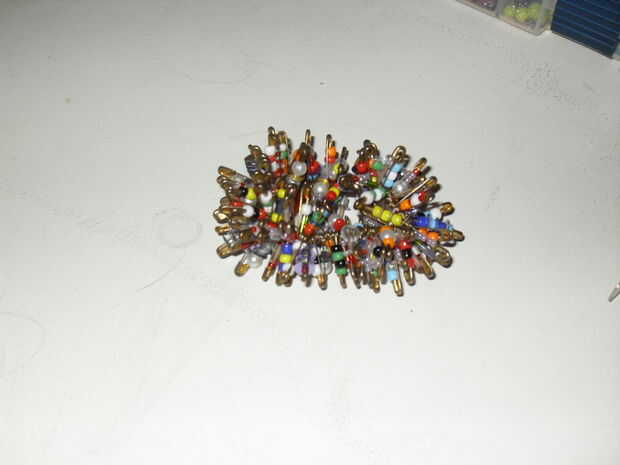 Cosas que "ll necesidad.1 imperdibles de varios tamaños2 granos3 cuerda elástica de4 cadena dePaso 1: Cómo hacer un collar de perno de seguridad.Usted usará una variedad de tamaños de perno de seguridad para hacer un diseño agradable. Sus pines y cad