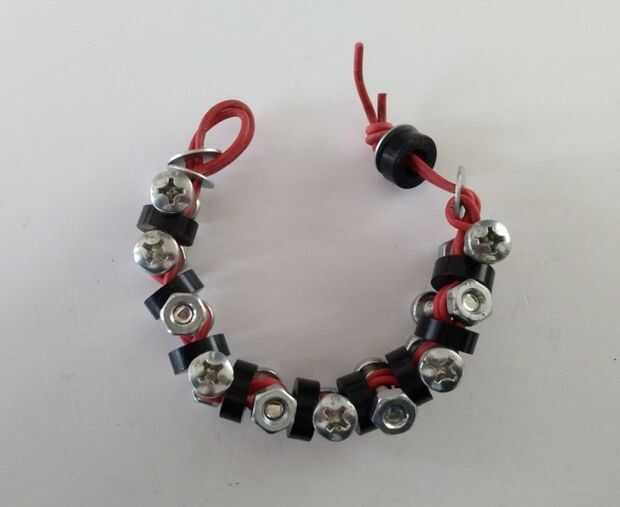 Así que esta es mi ' ible demostrando cómo creé una pulsera de aspecto industrial de varias piezas de sobras.