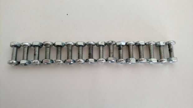 Hecho de M6 x pernos de cabeza hexagonal acero inoxidable de 16mm y algunas tuercas de acero inoxidable M6Se requiere mínimo de 10 pernos, dependiendo el tamaño de su muñeca.4 tuercas.SoldadorCadenaAmoladora de sierra para metalesTaladro y brocas (ta