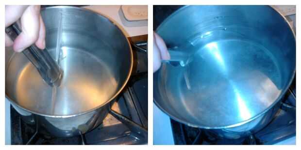 Después de unos segundos utilice las pinzas para presionar el cuchillo contra los lados de la olla para comenzar a formar.