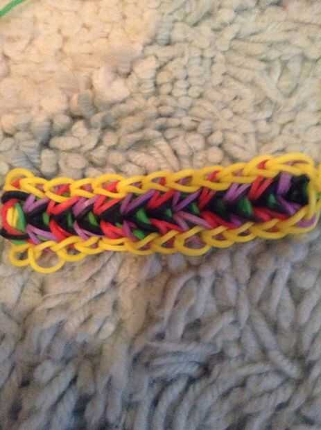 de hoy voy a mostrarte cómo hacer una pulsera de cable en el telar del arco iris es una pulsera de nivel intermediaria, pero a veces caen aparte pero no te enojes solo puede rehacerla solo te estoy dando este aviso ahora. cayó aparte en mí dos veces.