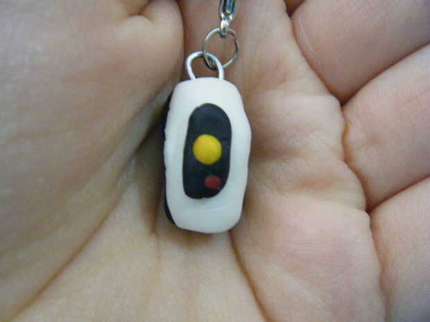 4. tomar un pequeño punto de arcilla amarilla y poner en el centro de la arcilla GLaDOS