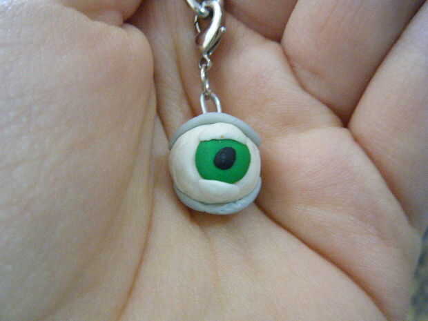 4. poner 2 tiras pequeñas en la parte superior e inferior del círculo verde, lo que parece tiene los párpados.