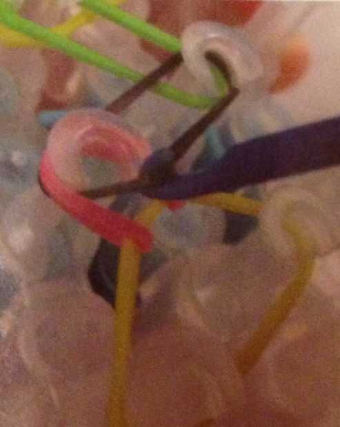 Paso 1: Lo que usted necesita Se necesita:• un telar• gomas• un gancho• un clip S o CPaso 2: Colocación de bandas Tome su primera banda y colóquelo a la izquierda. Luego tomar su segunda banda y colóquelo a la derecha. ASEGÚRESE DE QUE FLECHA TE ESTÁ