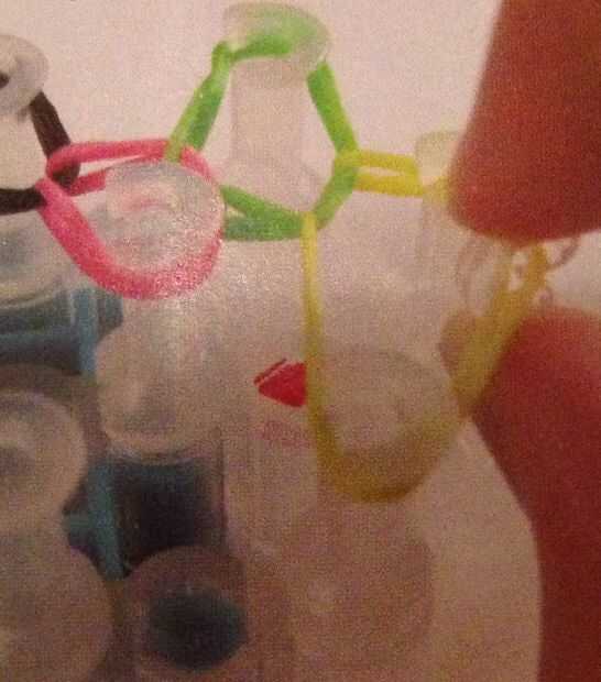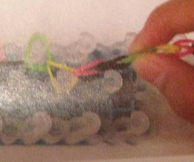 Paso 1: Lo que usted necesita Se necesita:• un telar• gomas• un gancho• un clip S o CPaso 2: Colocación de bandas Tome su primera banda y colóquelo a la izquierda. Luego tomar su segunda banda y colóquelo a la derecha. ASEGÚRESE DE QUE FLECHA TE ESTÁ