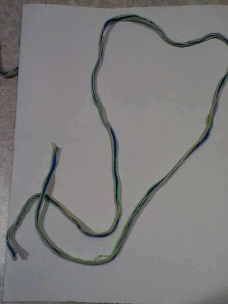 aquí hay un tutorial de la pulsera de amistad realmente fácil!Son lo suficientemente fáciles para que los niños también!Paso 1: Para empezar... #1. Se necesita:un pedazo largo de hilo de camisetas en cualquier color (también puedes hacer cortando una