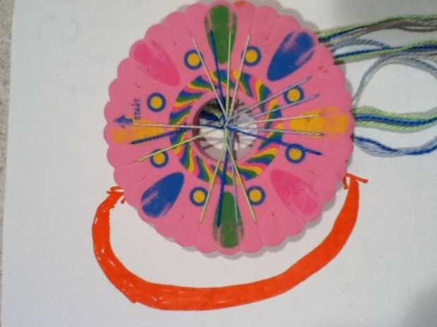 cómo hacer una pulsera de ondas con una rueda de pulsera. El uso de la rueda de la pulsera es único porque al utilizar la rueda abre muchas oportunidades diferentes para pulseras. ¡ Disfrute!Paso 1: Lo que se necesita2 colores de cuerdas (trabajos de