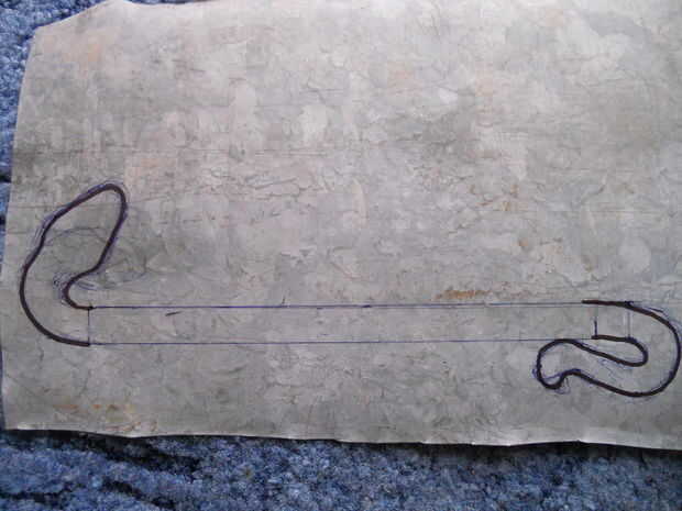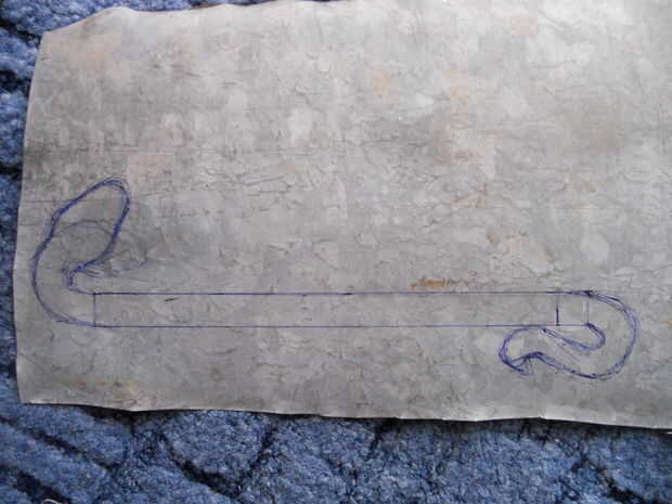 Como se aprecia en el cuadro dibujaba un 1 centímetro de ancho, 15,5 centímetros de línea larga y luego añade 1 centímetro al final a la longitud perfecta. Después de dibujé una cabeza de serpiente y una forma de cola de serpiente, entonces utilicé los marcadores para resaltar la línea mejor.