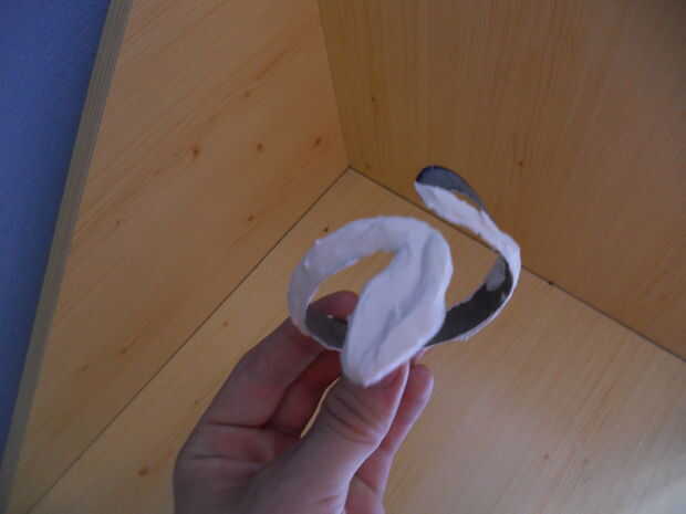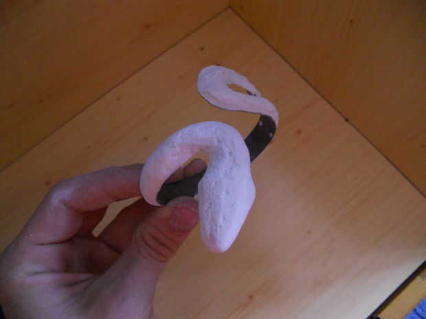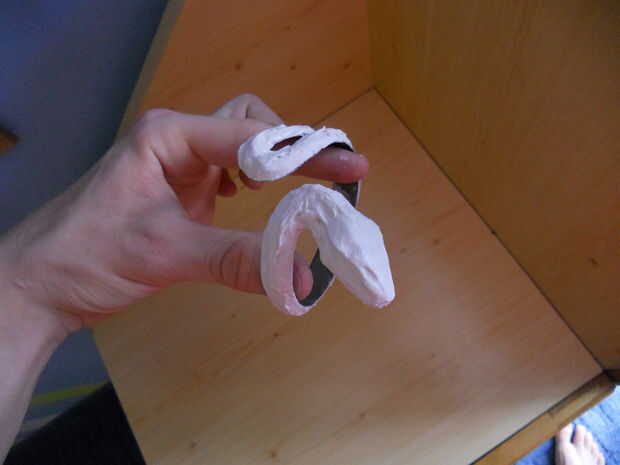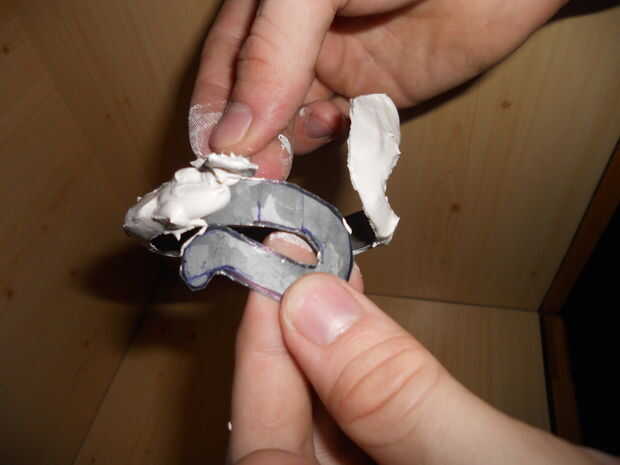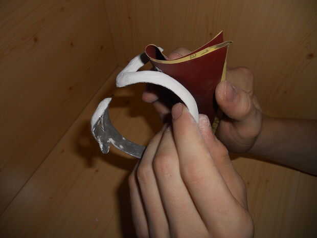 Han doblado la pulsera en la forma, por lo que puede. Después de 1-2 horas se puede lijarlo demasiado. Repita cuatro veces o más si es necesario. No tiene que ser perfecto después de la primera capa. Puede utilizar el dedo para añadir más relleno a las piezas más pequeñas.