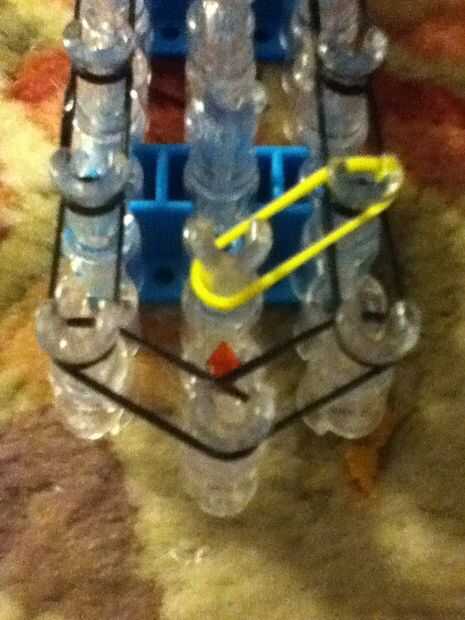 Paso 1: fuentes de Necesita el telar, el gancho, bandas del arco iris y un clip c o s.Paso 2: Colocar las bandas Get ready. Este es un gran paso. Comience colocando su primera banda de color desde el pasador central a la patilla izquierda. Luego, con