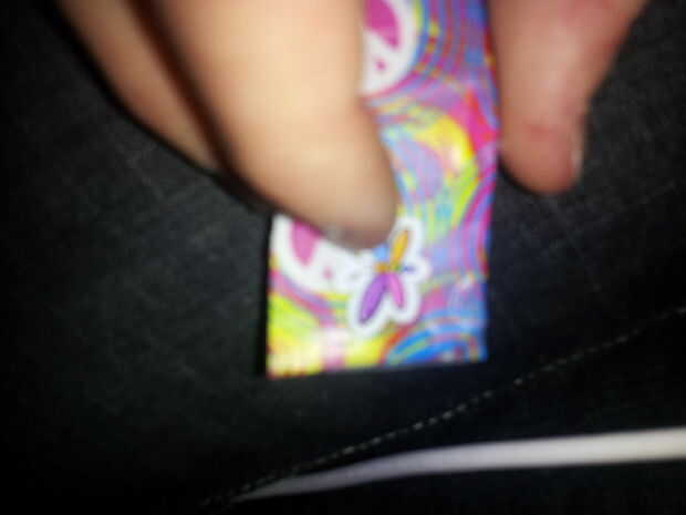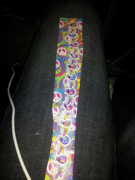 El adhesivo en el extremo de la cinta en el otro extremo. Mientras que el hacer que tienes que poner cinta adhesiva transparente sobre las pegatinas.