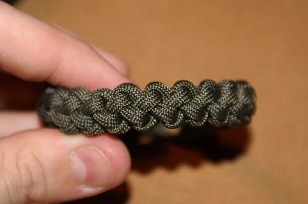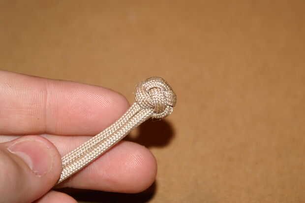 Poner en primer lugar, ambas piezas hasta el último bucle. Entonces, como antes de que se puede hacer un nudo de cuerda otra vez o un nudo de mano. Recorte el extremo y luego fundirse. Ahí lo tienen, un brazalete de supervivencia real.
