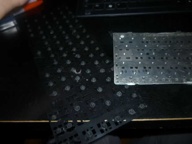 Quitar del todo la tecla de corchetes hasta que se expone el material plástico con resortes clave de goma. Asegúrese de que mantener todas sus hebillas claves etiquetadas en bolsas de plástico según el teclado tiene las teclas de tamaño.