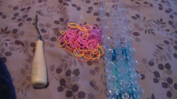 así que compré una bolsa de estas bandas de goma que viene con un gancho, broches y las bandas, pero ningún telar real arco iris de colores. No vienen con instrucciones y no sé que necesitas un telar para hacer este tipo de pulsera, pero había visto