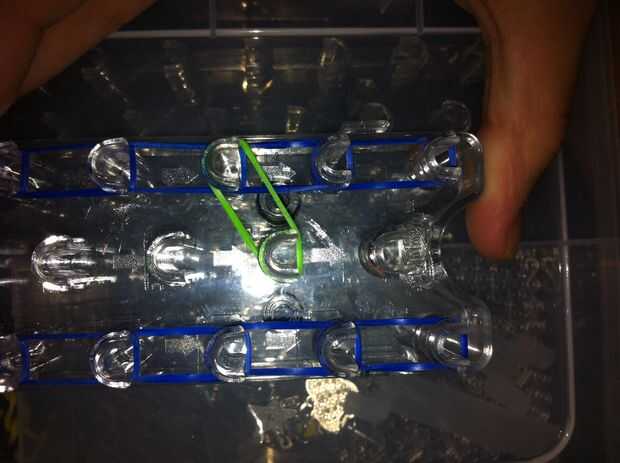Paso 1: fuentes de 1. telar de arco iris2. crochet gancho telar gancho o arco iris3. bandas de goma4. C clip o clip de sPaso 2: Cómo empezar Tomar tus bandas claro y colocarlos donde están en la foto.Paso 3: Hacer el efecto de la roca del caramelo En