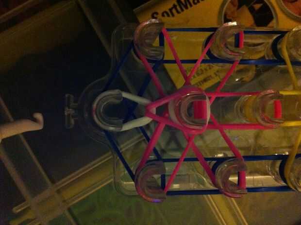 Paso 1: fuentes de 1. telar de arco iris2. crochet gancho telar gancho o arco iris3. bandas de goma4. C clip o clip de sPaso 2: Cómo empezar Tomar tus bandas claro y colocarlos donde están en la foto.Paso 3: Hacer el efecto de la roca del caramelo En