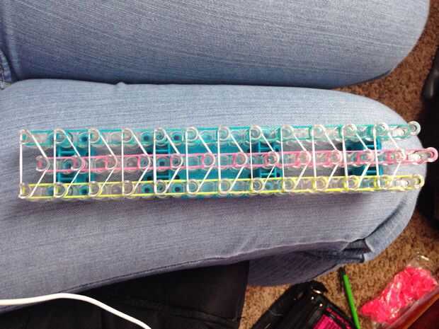 aquí hay un tutorial de una pulsera única triple.Paso 1: materiales Necesita 3 bandas de colores diferentes, su telar y su gancho.Paso 2: Poner las bandas en This step is easy! Simplemente poner las bandas en una fila y al revés por triángulos.Paso 3