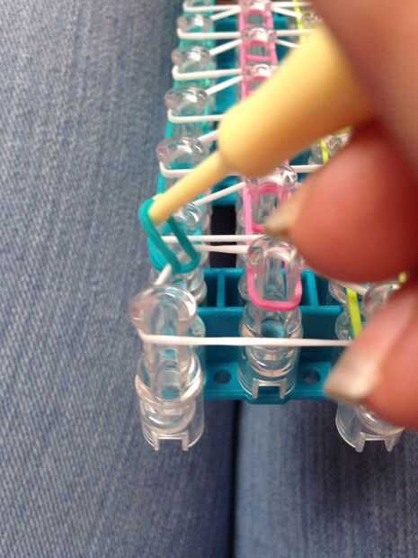 aquí hay un tutorial de una pulsera única triple.Paso 1: materiales Necesita 3 bandas de colores diferentes, su telar y su gancho.Paso 2: Poner las bandas en This step is easy! Simplemente poner las bandas en una fila y al revés por triángulos.Paso 3