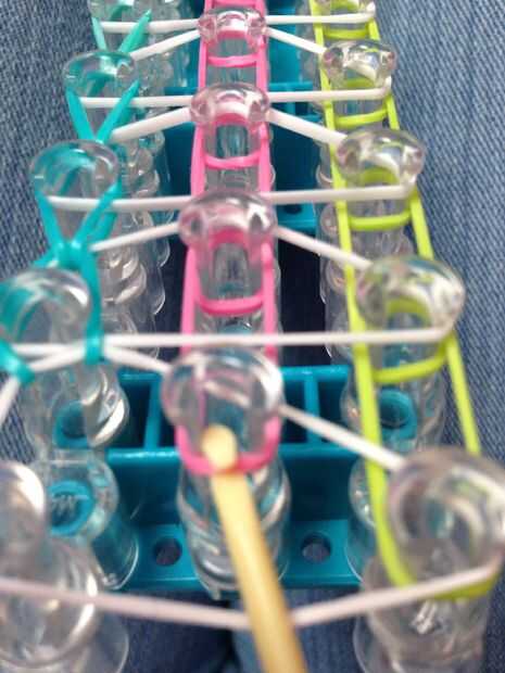 aquí hay un tutorial de una pulsera única triple.Paso 1: materiales Necesita 3 bandas de colores diferentes, su telar y su gancho.Paso 2: Poner las bandas en This step is easy! Simplemente poner las bandas en una fila y al revés por triángulos.Paso 3
