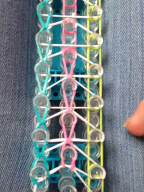 aquí hay un tutorial de una pulsera única triple.Paso 1: materiales Necesita 3 bandas de colores diferentes, su telar y su gancho.Paso 2: Poner las bandas en This step is easy! Simplemente poner las bandas en una fila y al revés por triángulos.Paso 3