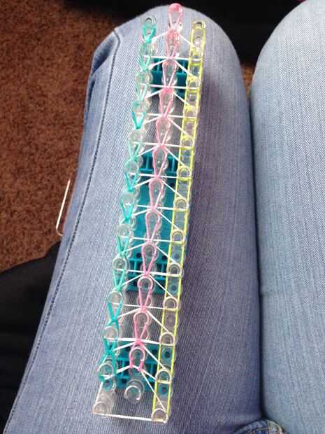 aquí hay un tutorial de una pulsera única triple.Paso 1: materiales Necesita 3 bandas de colores diferentes, su telar y su gancho.Paso 2: Poner las bandas en This step is easy! Simplemente poner las bandas en una fila y al revés por triángulos.Paso 3