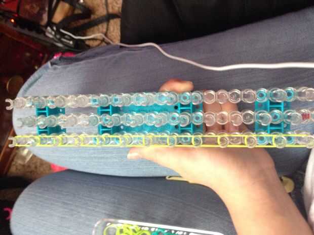 aquí hay un tutorial de una pulsera única triple.Paso 1: materiales Necesita 3 bandas de colores diferentes, su telar y su gancho.Paso 2: Poner las bandas en This step is easy! Simplemente poner las bandas en una fila y al revés por triángulos.Paso 3