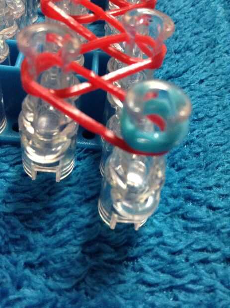 Aquí es el final :)Paso 1: Poner a las bandas!! Bien, va a tomar su primera banda y ponerlo en una diagonal desde la primera fila media.Paso 2: Más bandas :) Ahora, poner la siguiente banda en la misma primera fila, medio peg directamente diagonal de