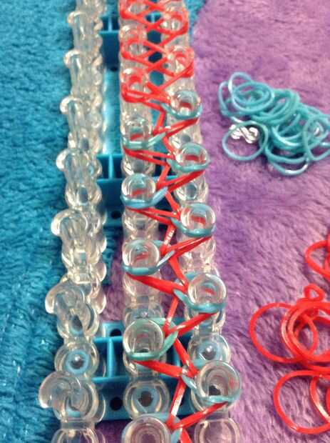 Seguir añadiendo bandas tapa a las clavijas que coloca a hasta llegar al final del telar.